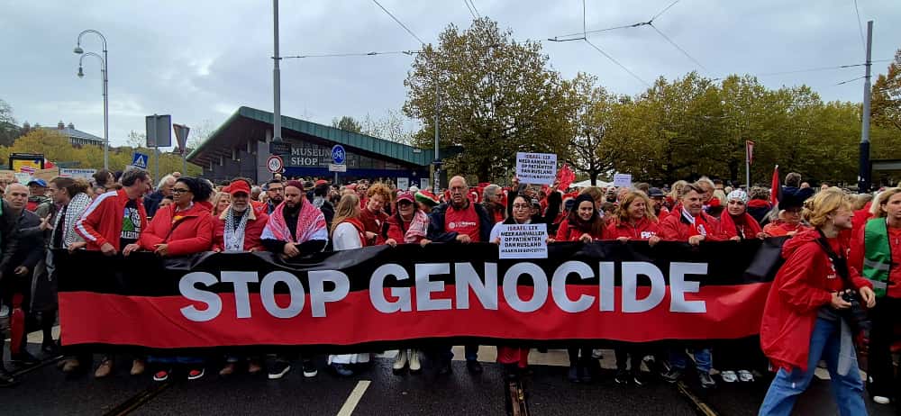 De demonstranten eisen dat de overheid sancties neemt tegen Israël die volgens hen genocide pleegt en het bezetten van Palestina. Volgens de organisatie van de demonstratie waren er rond de 250.000 mensen aanwezig, die vooral in het rood gekleed waren.